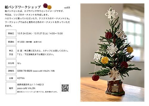 | 連絡先 | 0266-78-8826 (paso-café VALON 河西) |