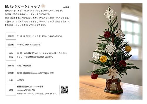 紙バンドといえば、カゴやバック作りというイメージですが、今回は、雪の結晶のオーナメントを作成します。